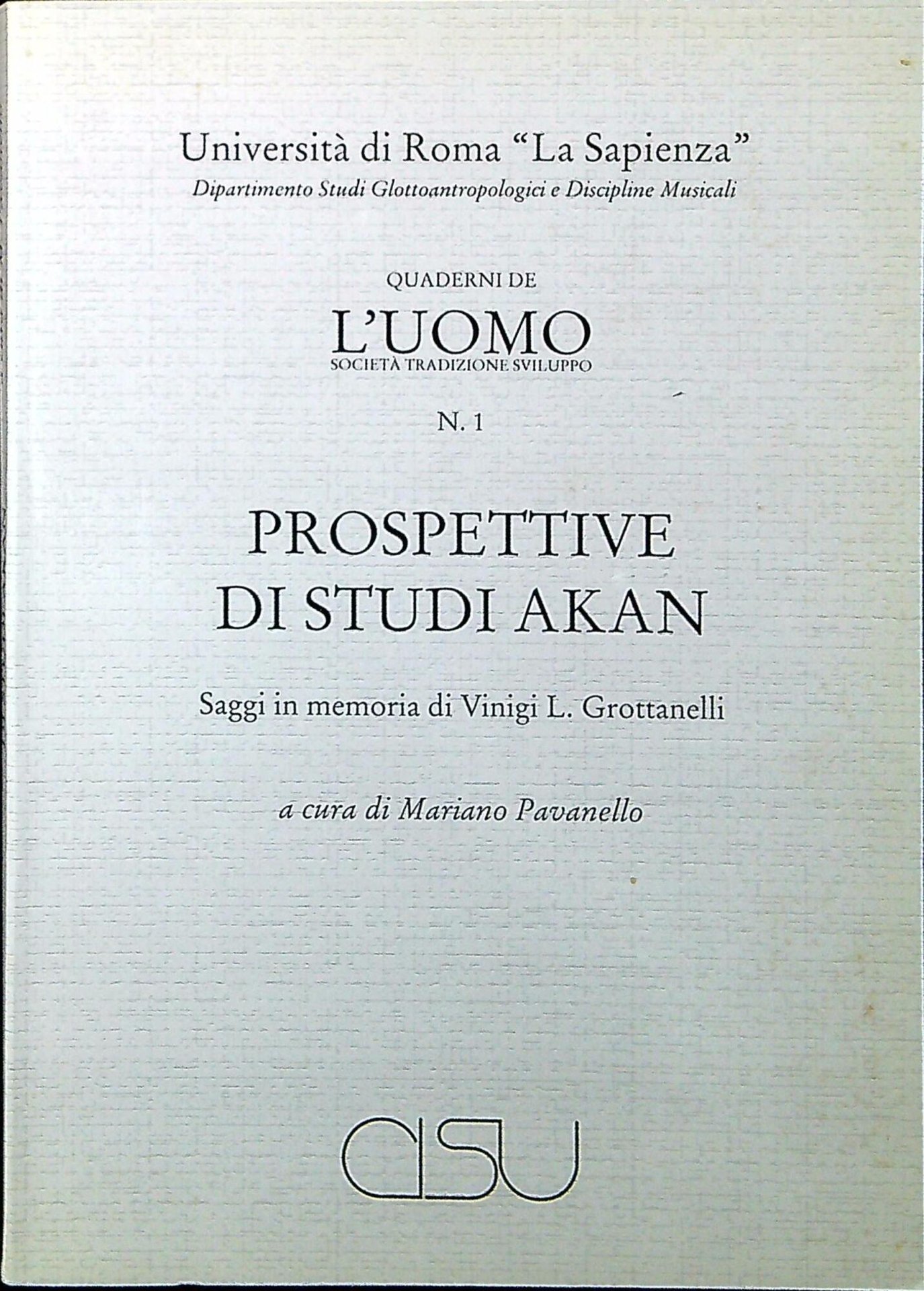 Pavanello, Mariano Prospettive di studi akan : saggi in memoria di Vinigi L. Grottanelli. , CISU 1998, 229 p., \2! c. di tav. : ill. ; 21 cm (72413)