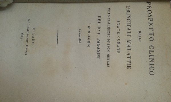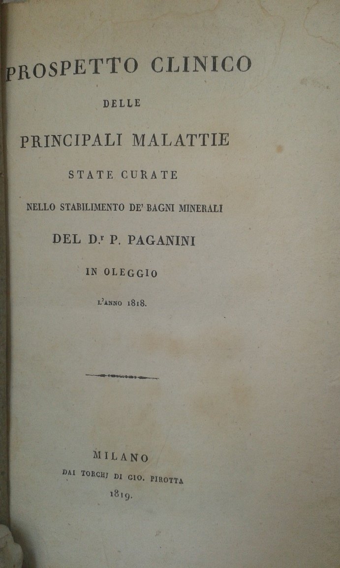 PROSPETTO CLINICO DELLE PRINCIPALI MALATTIE state curate nello stabilimento de' Bagni Minerali del Dr. P. Paganini in Oleggio l'anno 1818.