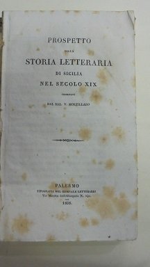 PROSPETTO DELLA STORIA LETTERARIA DI SICILIA NEL SECOLO XIX BARONE DI VILLARENA 1806-1838. Primo Volume (unico pubblicato!):