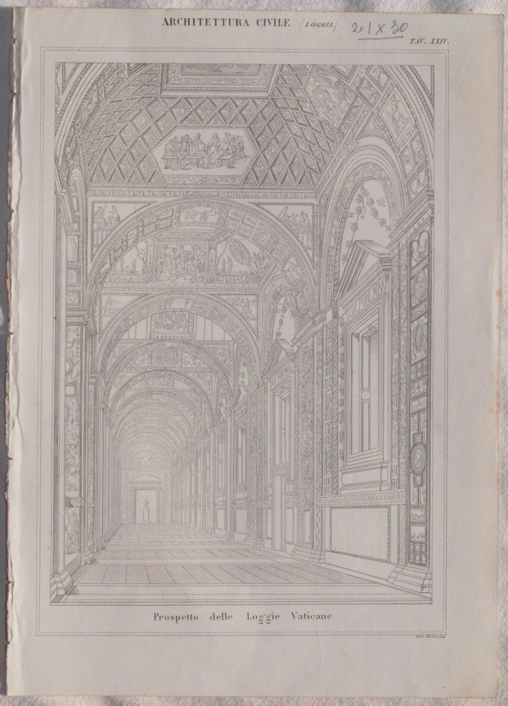 Bella incisione su acciaio del 1866 tratta dalla "Nuova Enciclopedia popolare italiana". L'incisione rappresenta il prospetto delle logge vaticane a Roma. Testo in lingua italiana. In buone condizioni, fioriture. Usura al margine superiore. TECNICA: Incisione su acciaio DIMENSIONI FOGLIO: cm 29x21 DIMENSIONI INCISIONE: cm 24,5x17 EPOCA: 1866. Beautiful steel engraving of 1866 taken from "Nuova Enciclopedia popolare italiana". The ngraving represents the prospect of Vatican lodges in Rome. Text in italian language. In good conditions, foxings. TECHNIQUE: Steel engraving LEAF SIZE: cm 29x21 PRINT'S SIZE: cm 24,5x17 PERIOD: 1866