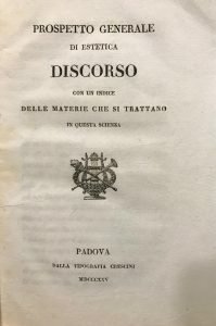 PROSPETTO GENERALE DI ESTETICA. DISCORSO CON UN INDICE DELLE MATERIE CHE SI TRATTANO IN QUESTA SCIENZA
