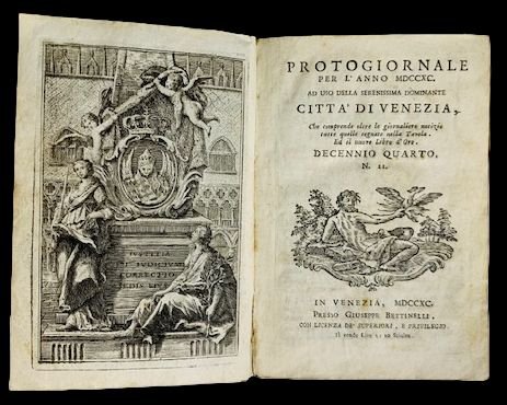 Protogiornale per l'anno 1790. Ad uso della Serenissima Dominante Città di Venezia, Che comprende oltre le giornaliere notizie tutte quelle segnate nella Tavola. Ed il Nuovo Libro d'Oro, Decennio Quarto N. II.