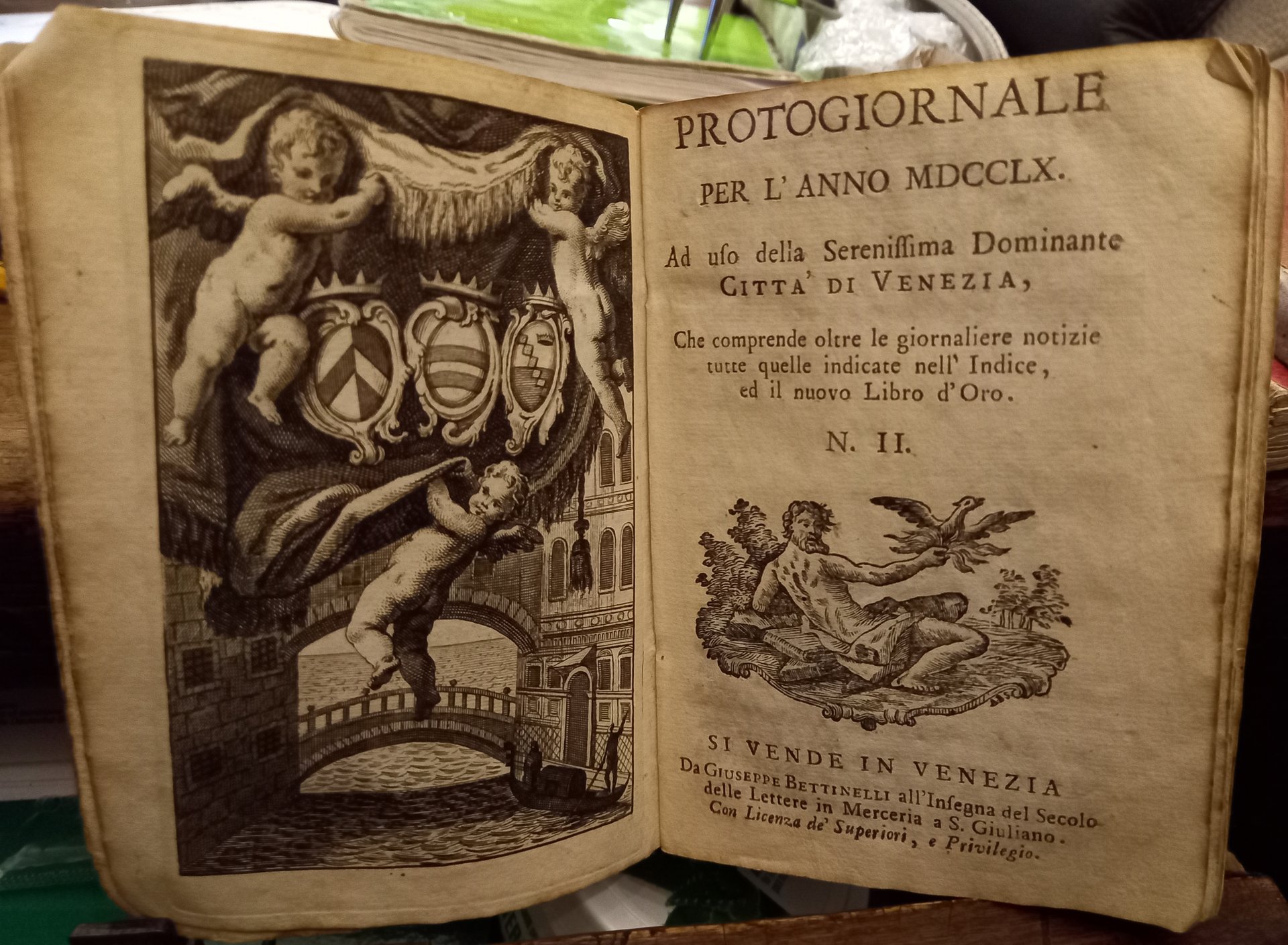 Protogiornale per l'anno MDCCLX ad uso della Serenissima Dominante Città di Venezia, che comprende, oltre le giornaliere notizie, tutte quelle segnate nella tavola, ed il nuovo Libro d'Oro. N. II