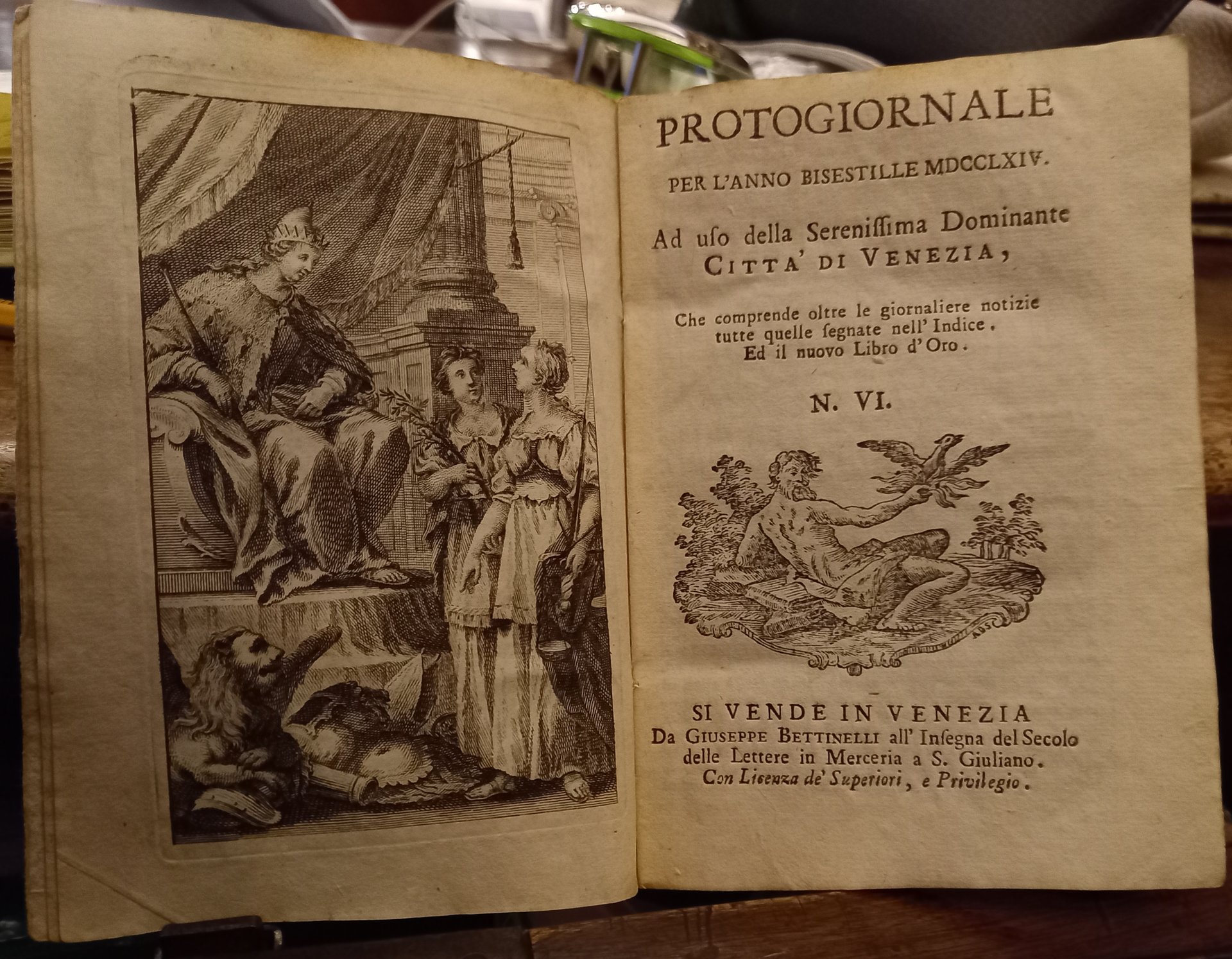 Protogiornale per l'anno MDCCLXIV ad uso della Serenissima Dominante Città di Venezia, che comprende, oltre le giornaliere notizie, tutte quelle segnate nella tavola, ed il nuovo Libro d'Oro. N. VI