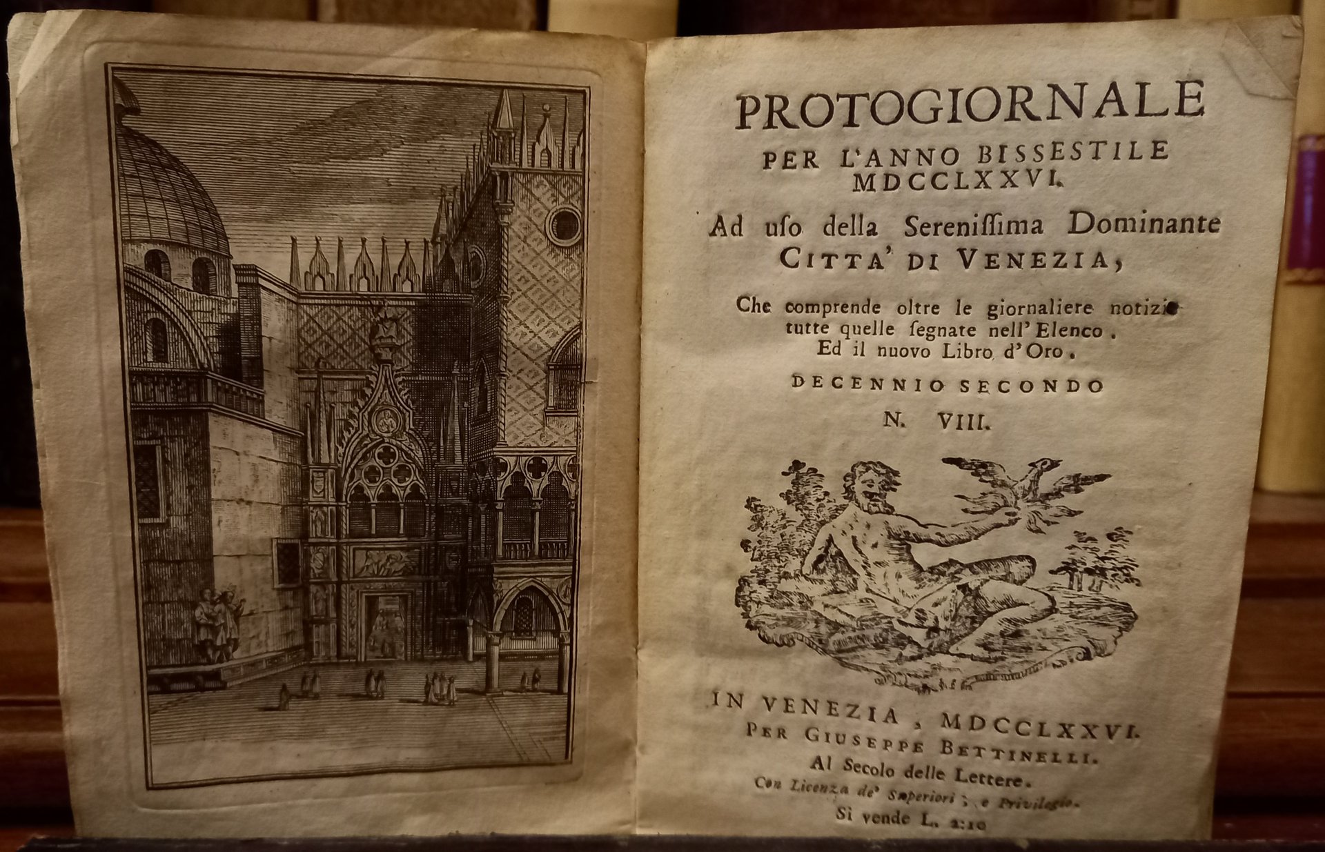 Protogiornale per l'anno MDCCLXXVI ad uso della Serenissima Dominante Città di Venezia, che comprende, oltre le giornaliere notizie, tutte quelle segnate nella tavola, ed il nuovo Libro d'Oro. Decennio secondo. N. VIII