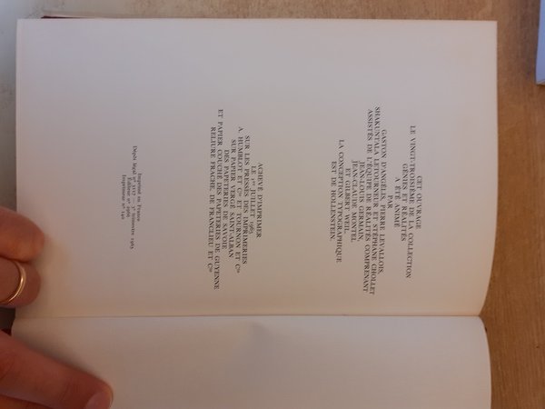 Vol. in -8 (16,5 x 24,5 cm.), legatura editoriale similpelle rossa con titoli in oro, sopraccoperta in acetato con titolo in oro, testo in francese. pp. 289, 8 tav. a colori applicate ai fogli a p.pagina e molte illustr. in nero nel testo e a p.pagina.