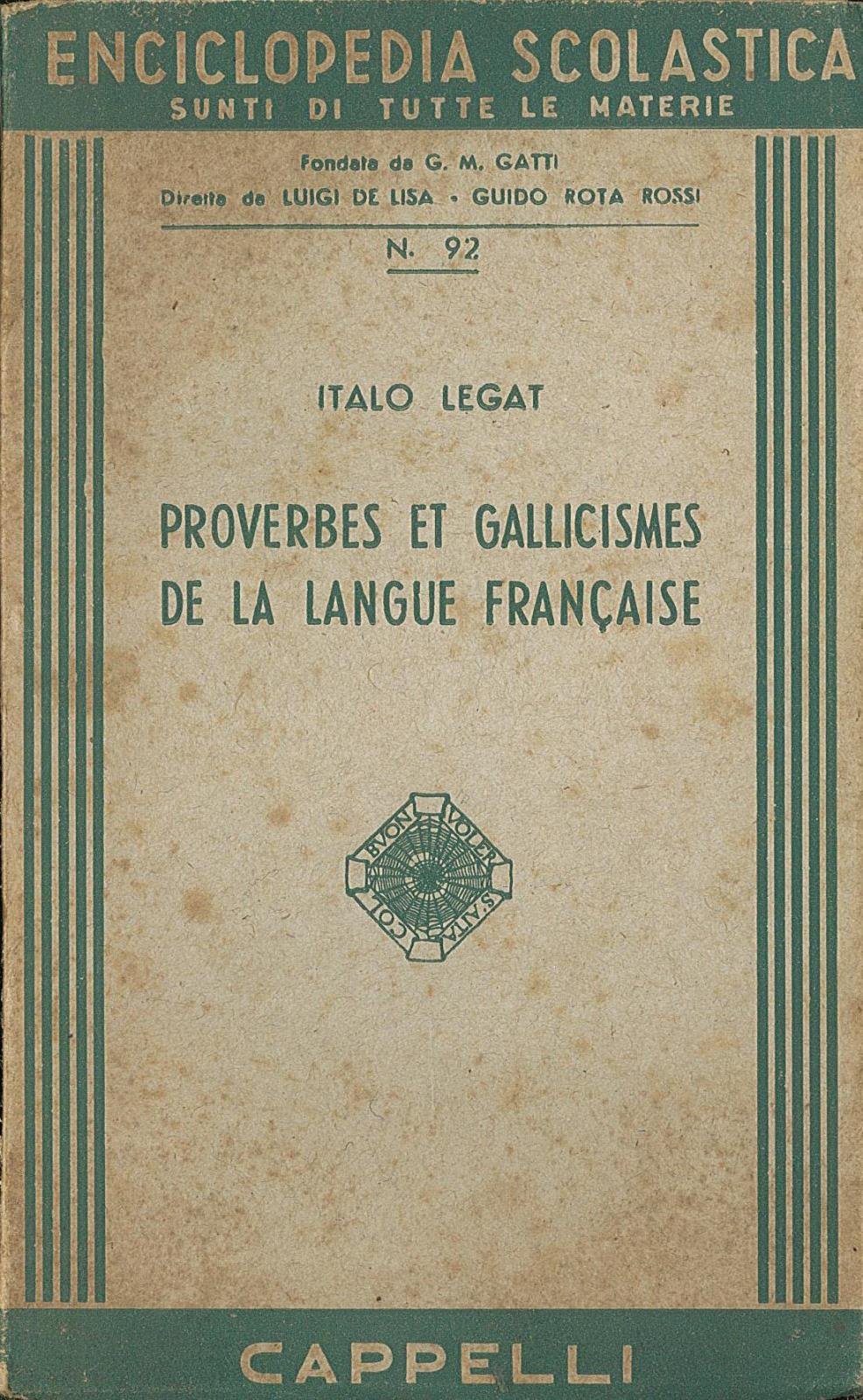 Collana "Enciclopedia scolastica" 92, fondata da G. M. Gatti e diretta da L. De Lisa e G. Rota Rossi. Volumetto ingiallito con bordi stanchi e macchie all'esterno. Etichetta applicata in quarta