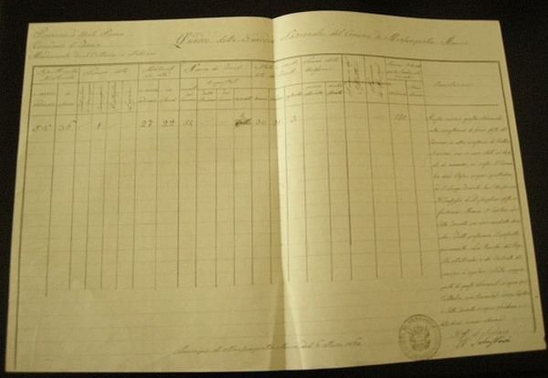 In 8? (cm 26,5x38), senza rilegatura, pagg. una pagina manoscritta in bella e chiara grafia, sono indicati: "inscritti sulla matricola", "Numero delle compagnie", "Mobilizzati per et?", "Numero di fucili", "Stato e servibilit? dei fucili", "Numero delle uniformi", "Numero dei Bagagli", "Somme bilanciate per Guardia Nazionale", "Annotazioni", firma autografa del Sindaco U. Sebastiani, timbo circolare "Municipio di Monsampietro Morico" con stemma reale, ottimo e fresco es.