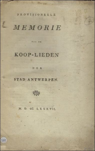 PROVISIONEELE MEMORIE VAN DE KOOP-LIEDEN DER STAD ANTWERPEN.