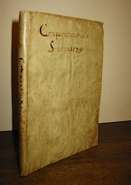 4to (cm. 20), 84 pp. (segue) Provisione del Sereniss. Cardinale Granduca di Toscana per il nuovo Capitanato di Montagna pubblicatasi in Balia di 10. di Giugno del 1588, 4 cc.nn. (segue) Provisione del Sereniss. Cardinale Granduca di Toscana per il nuovo Capitanato di Sinalunga, pubblicatasi in Balia il dì 18 d’Ottobre 1588, 4 cc.nn. Stemma mediceo in xilografia ai tre fontespizi. Legatura coeva in piena pergamena con titolo ms. al ds. e al piatto anteriore. In principio ed in fine, presenti otto carte bianche (sulla prima di quelle poste in fine, una nota cinquecentesca ms.). Piccolo percorso di tarlo sulle prime dieci pagine, vistose macchie su circa venti carte e piccole mancanze marginali su alcune pagine. Raro.