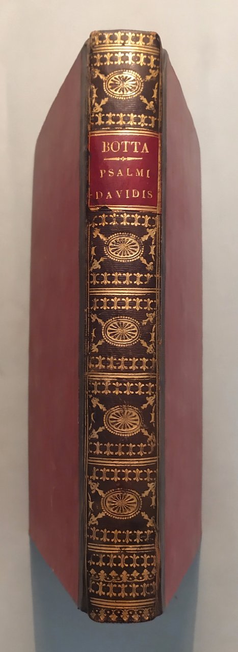 - Mezza pelle posteriore, tassello al dorso con titolo e ricchi fregi in oro