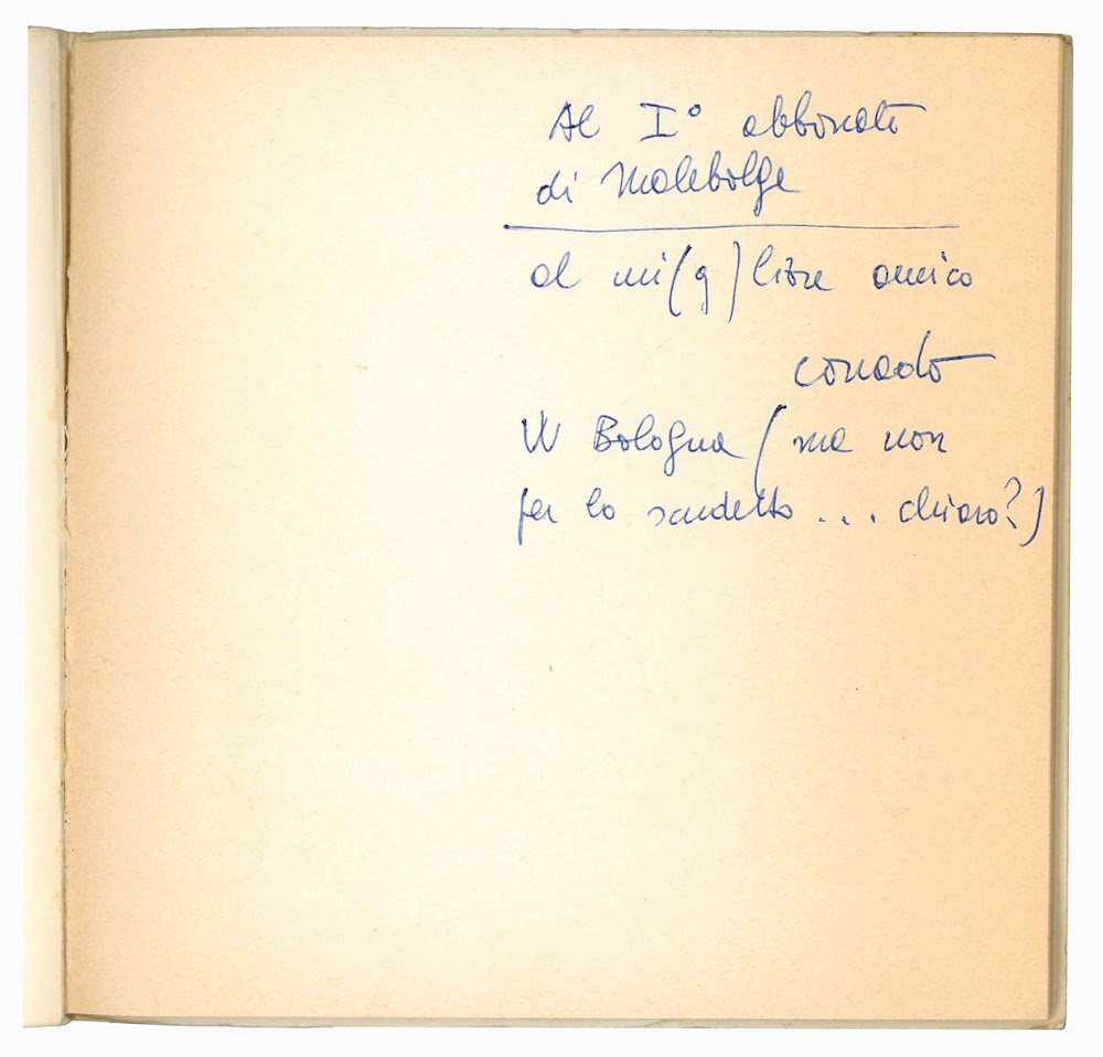Mm. 160x160. Pp. 51. Original illustrated wrappers (designed by Vittorio Cavicchioni). Copy 123 of 500. Dedication copy inscribed by the author. First edition.