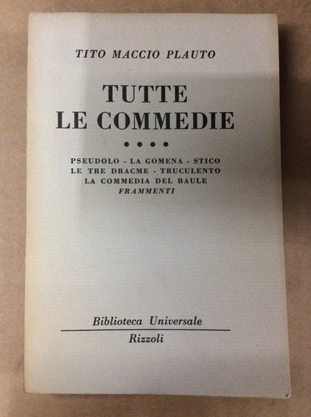 PSEUDOLO - LA GOMENA - STICO - LE TRE DRACME - TRUCULENTO - LA COMMEDIA DEL BAULE - FRAMMENTI (TUTTE LE COMMEDIE, IV).