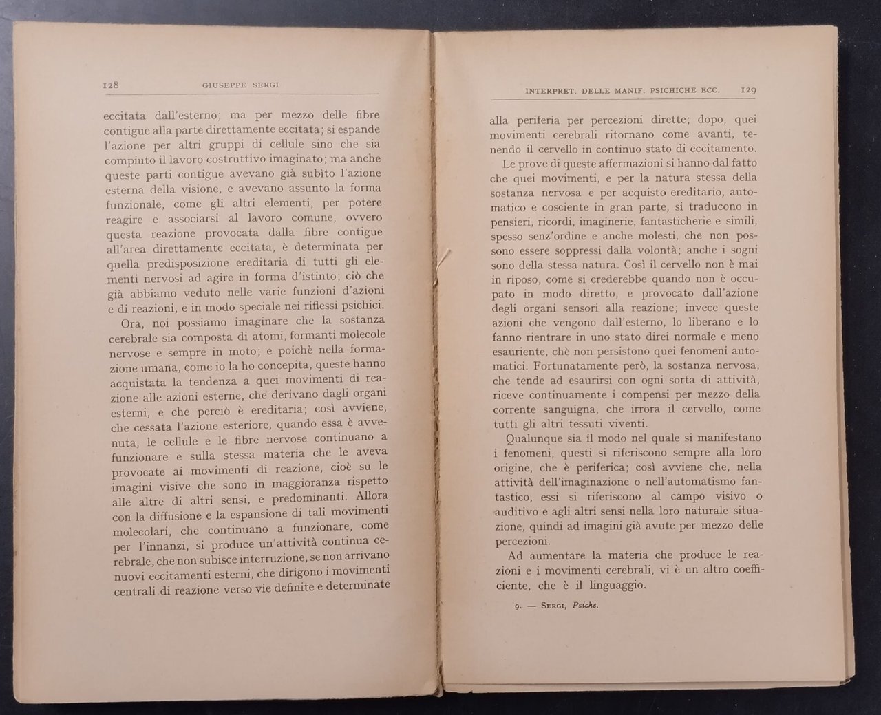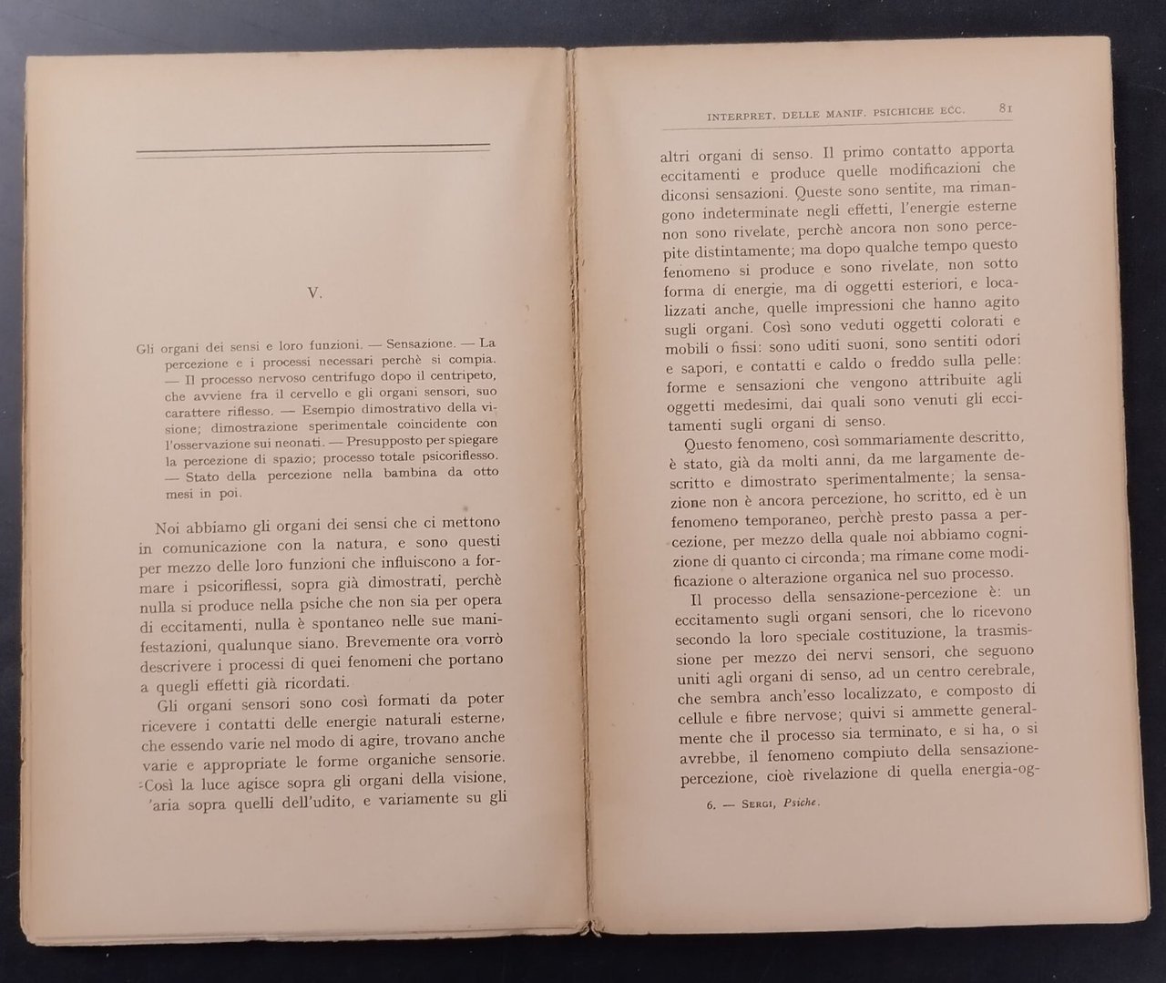 PSICHE GENESI EVOLUZIONE di Giuseppe Sergi 1930 Fratelli Bocca Libro osservazion