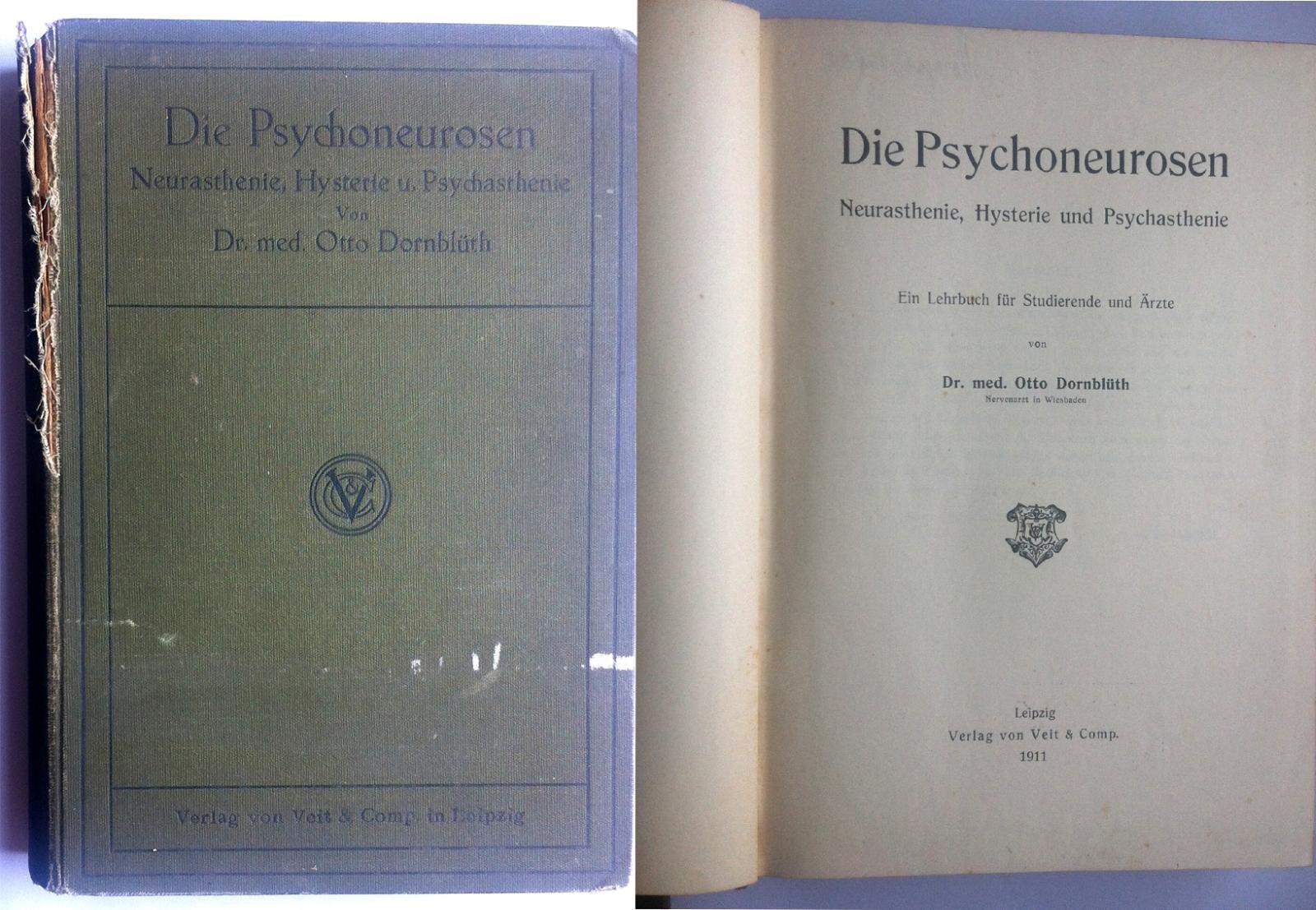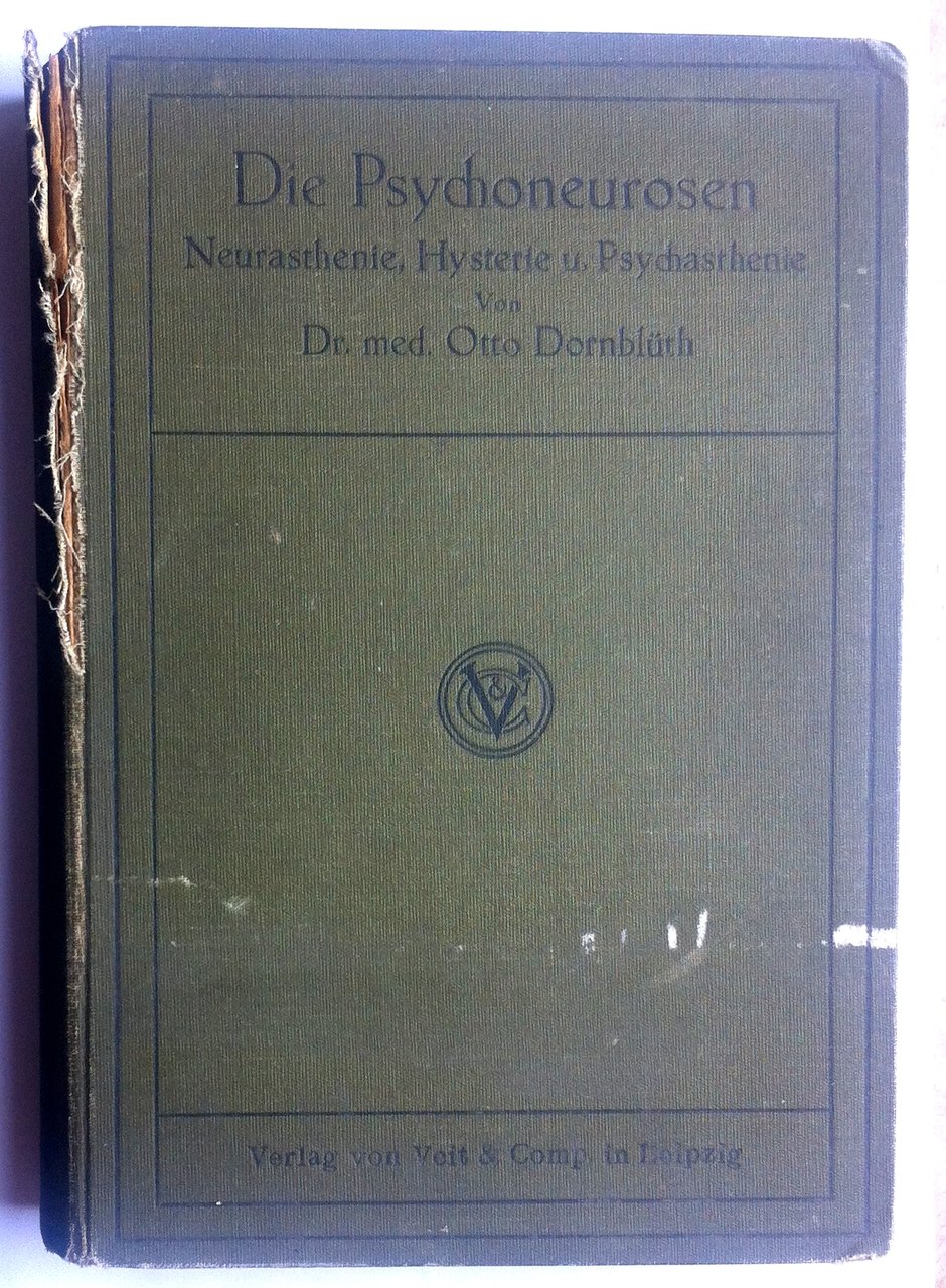 DIE PSYCHONEUROSEN NEURASTHENIE, HYSTERIE UND PSYCHASTHENIE EIN LEHRBUCH FUR STUDIERENDE UND ARZTE VON DR. MED. OTTO DORNBLUTH LIEPZIG 1911 COPERTINA RIGIDA EDITORIALE CON UNO STRAPPO TRA IL PIATTO ANTERIORE E IL DORSO, ALCUNE SPORCIZIE, UNO STRAPPO DI CM 4 AL FOGLIO DI GUARDIA, TIMBRO DI EX LIBRIS ALL'ANTIPORTA, TAGLI CON FIORITURE, TESTO SOTTOLINEATO A MATITA CON APPUNTI AL MARGINE, RARE SOTTOLINEATURE A MATITA BLU, RARISSIME FIORITURE INTERNE PRESENTI ALLE ULTIME PAGINE, N. PAG. 700 CM. 23,5 X 16,5