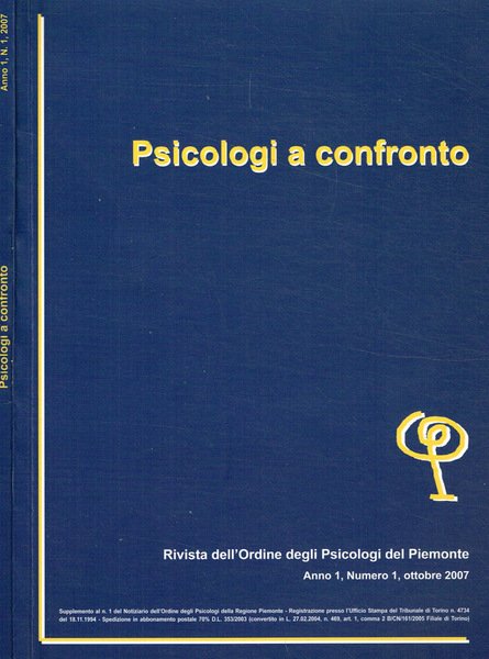 Psicologi a confronto. Rivista dell'Ordine degli Psicologi del Piemonte. Anno I numero 1 ottobre 2007