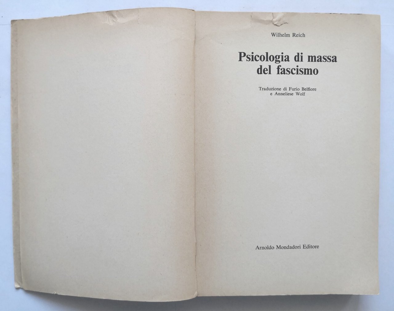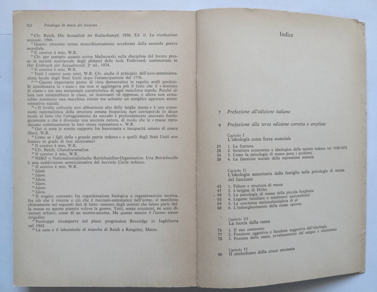 PSICOLOGIA DI MASSA DEL FASCISMO Wilhelm Reich 1974 Mondadori libro sulla