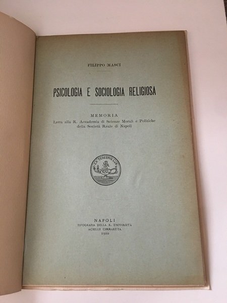 Psicologia e sociologia religiosa. Memoria letta all R. Accademia di Scienze morali e politiche della Soc. Reale Napoli.