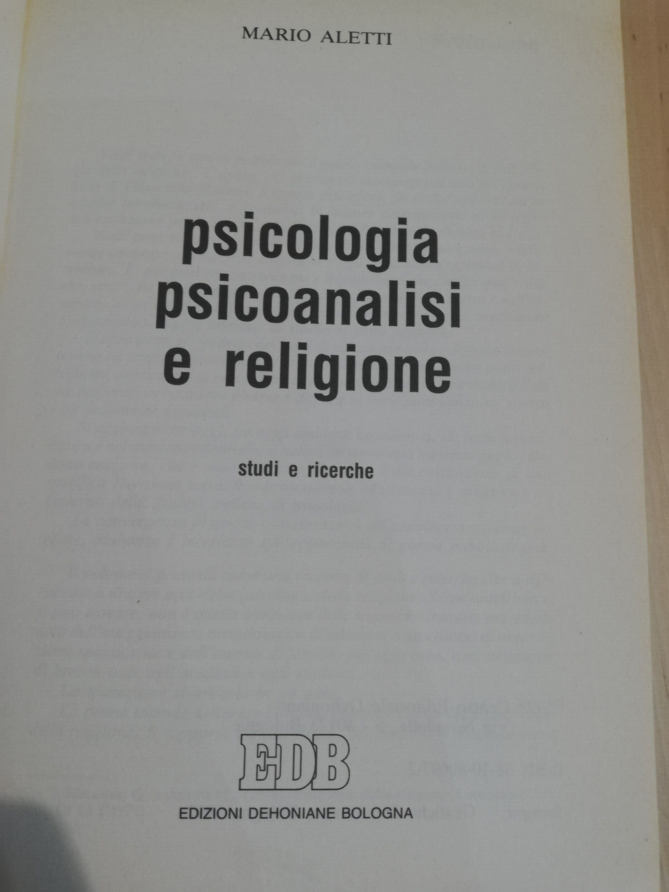 Psicologia, psicoanalisi e religione. Studi e ricerche, Mario Aletti, EDB, 1992