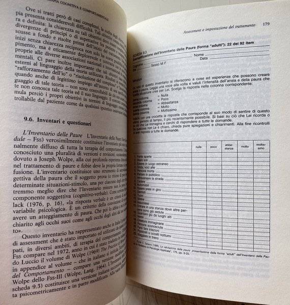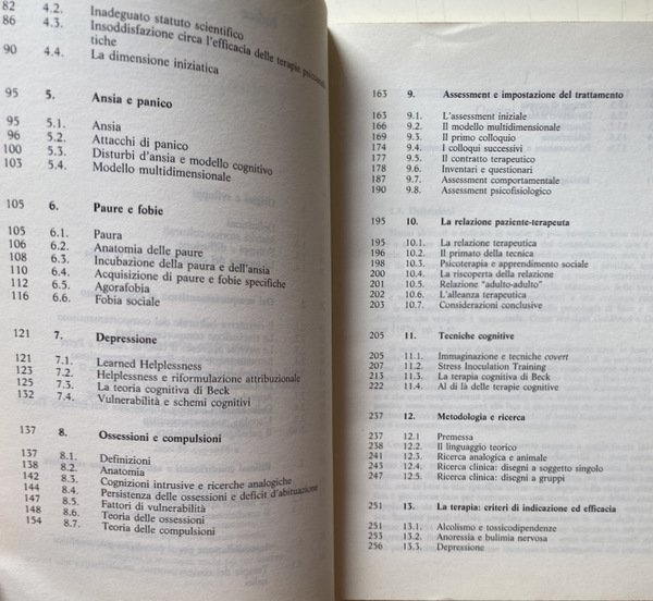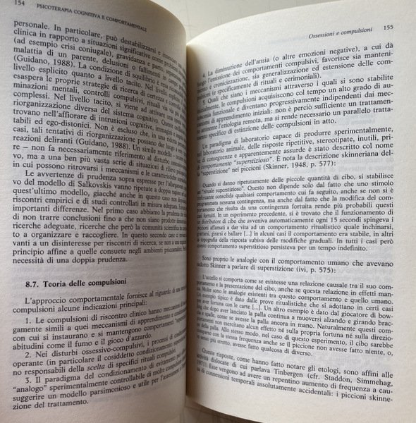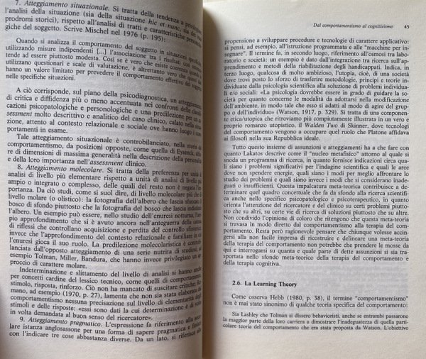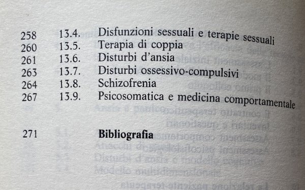 Soggetti: Psicologia clinica, Libri universitari, Psicanalisi, Medicina, Psicoterapia, Psichiatria, Disturbi psichici, Disagio mentale, Nevrosi, Ossessioni, Comportamento ossessivo-compulsivo, Manie, Cure, Teorie psicologiche, Test, Quiz, Diagnosi, Cura, Terapie, Relazione medico-paziente, Attacchi di panico, Ossessioni, Apprendimento sociale, Rinforzo, Animali, Comportamenti ossessivi, Personalità, Inventari, Questionari, Terapie comportamentali, Soggetti nevrotici, Ansia, Depressione, Famiglia, Ambiente sociale, Bambini, Adulti, Crescita, Sviluppo psichico, Pedagogia, Tradizione cognitivista, Mente, Cervello, Problemi, Paradosso nevrotico, Resistenza al cambiamento, Senso comune, Condotte psicopatologiche, Retroterra culturale, Meta-teoria, Social Learning Theory, Modeling, Self-Efficacy, Paradigma psicoanalitico, Riflessi condizionati, Pavlov, Paura, Fobie, Fobia sociale, Agorafobia, Learned Helplessness, Beck, Compulsioni, Anatomia, Colloquio, Psicoterapeuta, Psicologo, Assessment psicofisiologico, Relazione adulto-adulto, Tecnica, Alleanza terapeutica, Stress Inoculation Training, Covert, Terapie cognitive, Freud, Jung, Disegni, Linguaggio, Associazioni mentali, Alcolismo, Tossicodipendenza, Cibo, Anoressia, Bulimia, Droga, Binge Eating disorder, Sessualità, Disfunzioni sessuali, Coppia, Matrimonio, Amore, Infedeltà, Schizofrenia, Isteria, Psicosomatica, Psicofarmaci, Manuali, Saggi, Consultazione, Bibliografia, Riferimento, Libri Vintage Fuori catalogo, Skinner, Linsley, Esperimenti, Eysenck, Esperimenti, Hull Wolpe, Rachman, Lazarus, Meyer, Pessotti, Paolo Meazzini, Aldo Galeazzi, Gian Franco Goldwurm, Roberto Anchisi, Bowlby, Mahoney, Beatrice Bauer, EABT, Emery, Rotter, Hebb, Tolman, Bandura, Miller, Mischel, Walden Two, Weiss, Circolo di Vienna, Mower, Guthrie, Watson, Claude Bernard, Auguste Comte, Positivismo, Riduzionismo, Ambientalismo, Determinismo, Evoluzionismo, Pragmatismo, Empirismo inglese, Materialismo francese, Darwin, Roberto Ardigò, Lamark, Spencer, Peirce, Dewey, Mead Herbert, Chicago, Rivoluzione comportamentista, Bioenergetica, Training autogeno, Transazionale, John Stuart Mill, Locke, Hume, Bain, Hartley, Cabanis, Le Mettrie, Cartesio, Condillac, Etologia, Piccioni, Gioco d'azzardo, Astrazione, Suicidio, Privazione, Ripetizione, Coazione, Dollard, Guidano, Lang, Leff, Clinical psychology, University books, Psychoanalysis, Medicine, Psychotherapy, Psychiatry, Psychic disorders, Mental distress, Neurosis, Obsessions, Obsessive-compulsive behavior, Manias, Cures, Psychological theories, Treatment, Therapies, Doctor-patient relationship, Panic attacks, Obsessions, Social learning, Reinforcement, Animals, Obsessive behaviors, Personalities, Inventories, Questionnaires, Behavioral therapies, Neurotic subjects, Anxiety, Depression, Family, Social environment, Children, Adults, Growth, Septic development, Pedagogy, Cognitivist tradition, Mind, Brain, Problems, Neurotic paradox, Resistance to change, Common sense, Psychopathological behaviors, Cultural background, Meta-theory, Psychoanalytic paradigm, Conditioned reflexes, Fear, Phobias, Social phobia, Agoraphobia, Compulsions, Anatomy, Interview, Psychotherapist, Psychologist, Assessment psychophysiological, Relationship, Technique, Therapeutic alliance, Cognitive therapies, Drawings, Language Day, Mental associations, Alcoholism, Drug addiction, Food, Anorexia, Sexuality, Sexual dysfunction, Couple, Marriage, Love, Infidelity, Schizophrenia, Hysteria, Psychosomatics, Psychotropic drugs, Manuals, Essays, Consultation, Bibliography, Reference, Out of print books, Experiments, Experiments, Vienna Circle, Positivism, Reductionism, Environmentalism, Determinism, Evolutionism, Pragmatism, English Empiricism, French Materialism, Behaviorist Revolution, Bioenergetics, Autogenic Training, Transactional, Descartes, Ethology, Pigeons, Gambling, Abstraction, Suicide, Deprivation, Repetition
