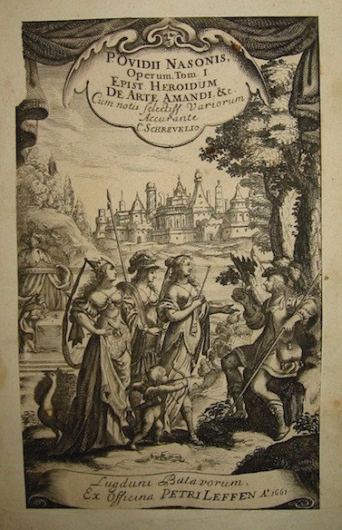 Pub. Ovidii Nasonis Opera omnia, in tres Tomos divisa ex accuratissima recensione Nicol. Heinsii cum notis selectissimis Variorum, in omnes ejusdem libros; & Figuris aeneis artificiosissimis, singulis libris Metamorphoseon praefixis, augmenta eorundem indicantibus. Editio nitidissima, accuratissima, accurante Cornelio Schrevelio