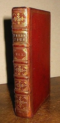 12mo (cm. 12), 24 cc.nn. (compreso frontis. interamente inciso), 304 pp., 4 cc.nn. Splendida legatura coeva in marocchino rosso con cornici oro ai piatti. Nervi, ricchi fregi e titolo oro su tassello nero al ds. Dentelle e tagli oro. Carte di guardia marmorizzate con disegni a pettine. Ottimo esemplare. Prima edizione, seconda tiratura. Willems, 433. Provenienza: collezione Wardington (Ex libris cartaceo al contropiatto posteriore).