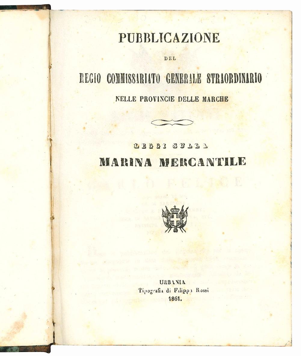 Pubblicazione del Regio Commissariato Generale Straordinario nelle provincie delle Marche. Leggi sulla marina mercantile (insieme a:) Leggi e regolamenti per la marina mercantile.