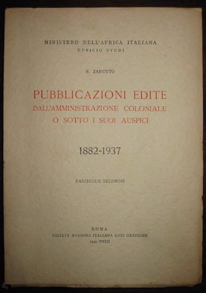 Pubblicazioni edite dall’Amministrazione coloniale o sotto i suoi auspici 1882-1937.Fascicolo secondo