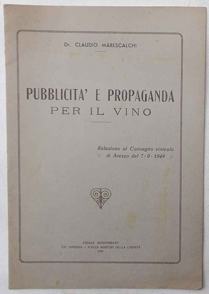Pubblicità e propaganda per il vino. Relazione al Convegno Vinicolo di Arezzo del 7-9-1949.,-