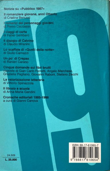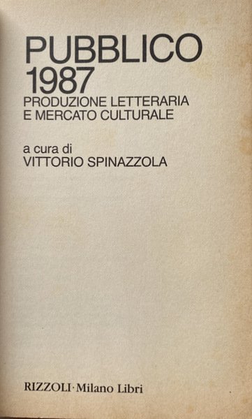 Titolo: Pubblico 1987. Produzione Letteraria e mercato culturale