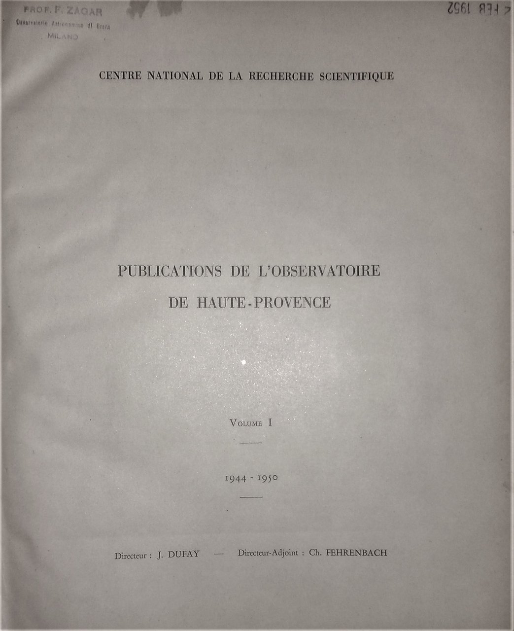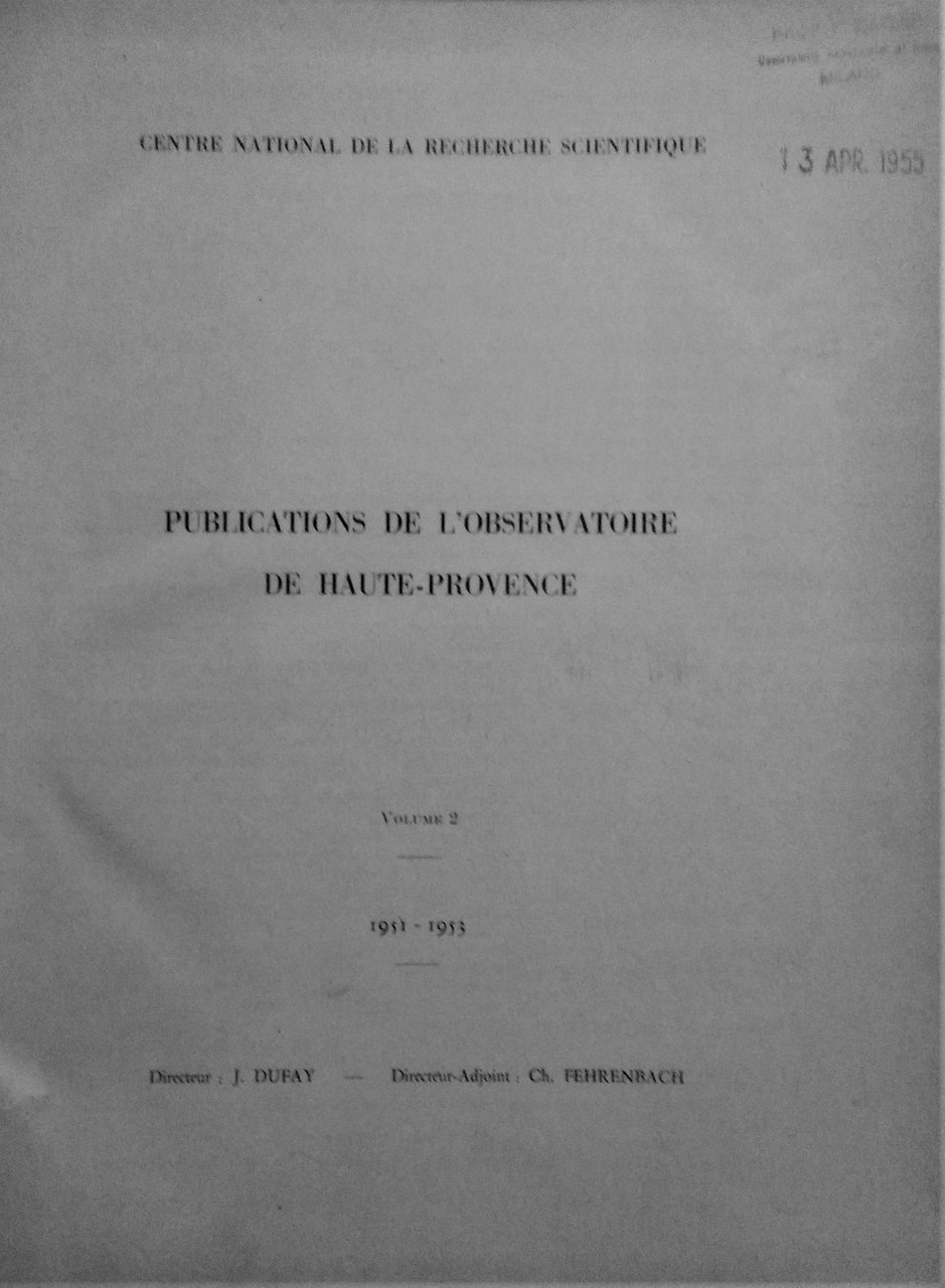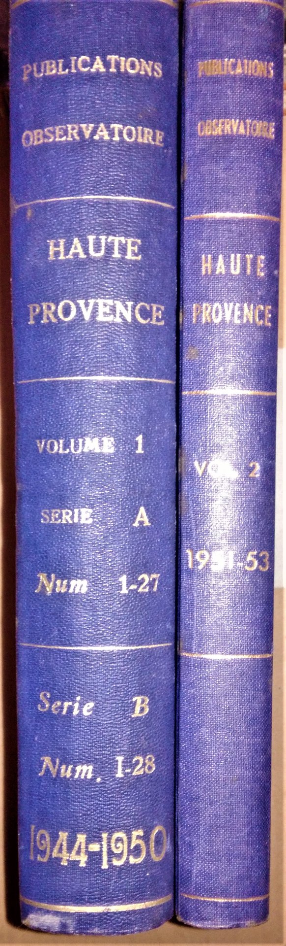 Publications de l'Observatoire de Haute Provence. Volume I 1944-1950. Volume 2 1951-1953.