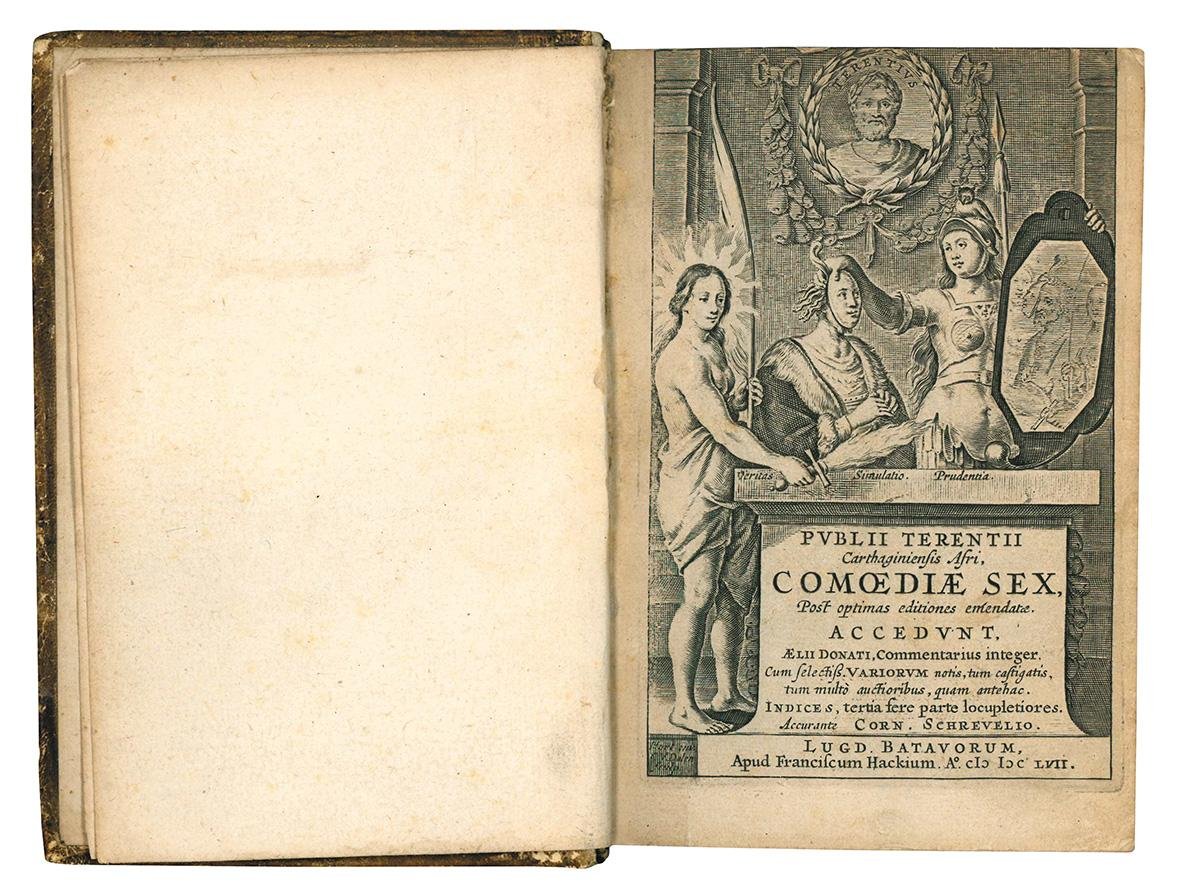 Publii Terentii Carthaginiensis Afri, Comoediae sex, post optimas editiones emendatae. Accedunt, Aelii Donati, Commentarius integer. Cum selectiss. variorum notis, tum castigatis, tum multo auctoribus, quam antehac. Indices, tertia fere parte locupletiores. Accurante Corn. Schrevelio.