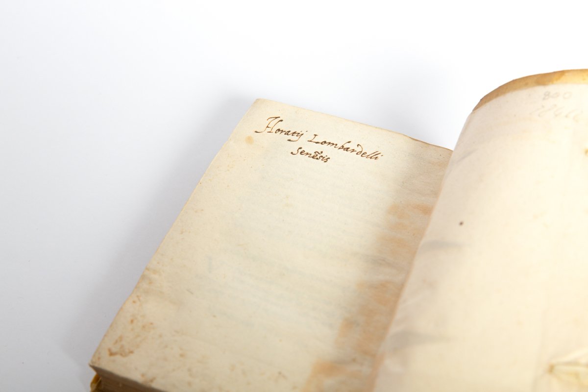 16°, mm 150x100, pp. (6), 42; (8), 103, (1); 12, 67, (1); (6), 42; (8) 54, (2); (6), 58; (8), 55, (1); (16), 96. Legatura coeva in pergamena floscia con unghie, titolo manoscritto al dorso, tracce di bindelle. Numerosi capilettera istoriati, ogni volume con proprio frontespizio. Ininfluenti segni di tarlo al margine interno di poche carte centrali, ma bell'esemplare con interessante provenienza: firma di Horatij Lombardelli Senenses sapientemente apposta all'ultima carta bianca, forse per non destare sospetti inquisitori. Lo Spinola è stato un eretico e umanista lombardo di origine genovese che nel 1564 fu arrestato a Venezia in seguito alle rivelazioni di Giovanni Andrea Ugoni, sotto processo per eresia. Fu condannato a morte e annegato nella laguna il 31 gennaio 1567. L'antico possessore di questa edizione originale dell'opera di Spinola fu il prolifico letterato e linguista senese Orazio Lombardelli (1545-1608), la cui biblioteca venne venduta alla sua morte per sanare i conti di famiglia. Lombardelli fu un protagonista della vita accademica senese, scrisse opere sulla ben nota questione della lingua, altre di carattere più pedagogico, infine difese il Tasso dalle accuse linguistiche della scuola toscana più conservatrice. (DBI). Francesco Spinola invece era nativo di Lomazzo (nell'opinione di Paolo Giovio), pur essendo un personaggio oggi dimenticato, ne parlano innumerevoli autori antichi (per esempio Picinelli, Argelati e Querini). La sua antica fama si deve forse più all'avventurosa biografia che non alla qualità letteraria delle sue opere, tra cui la più degna di nota è un trattato matematico ricordata dal bibliografo Riccardi (I, 471). I suoi eruditi componimenti neolatini sono dedicati ad influenti personaggi dell'epoca, sempre in cerca di protezione. Su questo eclettico personaggio, amico tra gli altri del Paleario e del Flaminio, vedi l'articolo di Pio Paschini: Un umanista disgraziato nel Cinquecento: Publio Francesco Spinola. In “Nuovo archivio veneto”, nuova serie, XXXVII, 1919, pp. 65-189. Abbastanza raro sul mercato e per lo più sconosciuto ai repertori classici come Brunet e Graesse. Nel 1951 il libraio William Schab ne proponeva una copia a 60 dollari dandone questa descrizione: The very rare first edition of the collected works of a major neo-Latin poet. It is unrecorded by any bibliographer. Adams, 1603 British Library p. 637 P. Paschini, Nuovo Archivio Veneto, XXXVII, 1919, pp. 65-189.. *** TUTTI I NOSTRI LIBRI SONO VISIBILI PREVIO CONTATTO MAIL O TELEFONO NELLA NUOVA SEDE DI MILANO: LIBRERIA COSMOPOLIS, VIA JOMMELLI, 22. ***