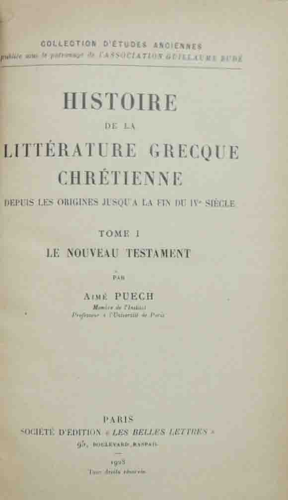 Puech, Histoire de la littérature grecque chrétienne deppuis les origines jusqu’a la fin du IV siècle