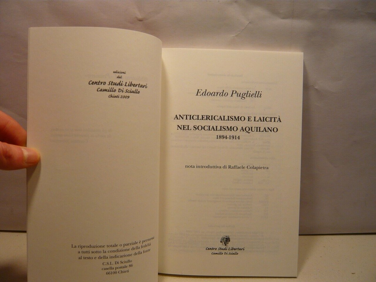 Puglielli,ANTICLERICALISMO E LAICITÀ NEL SOCIALISMO AQUILANO,2009[Colapietra