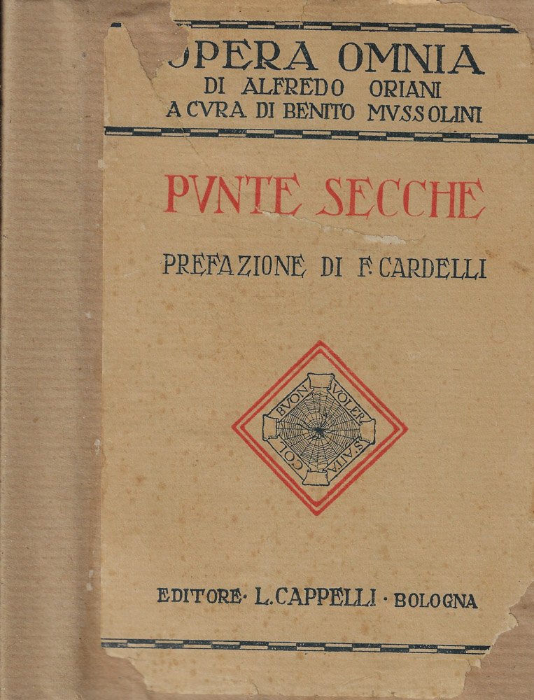 Volume n. XXIII della collana Opera Omnia di Alfredo Oriani a cura di Benito Mussolini. Prefazione di Ferruccio Cardelli. Legatura cartonata leggermente brunita e segnata dal tempo, con strappetto alla cima del dorso e con sovraccoperta con alette, in cartoncino, scurita e con alcune piccole mancanze. Taglio superiore colorato di rosso; pagine ingiallite, salde, con ampio margine e qualche piccola gora. Numero pagine 262.