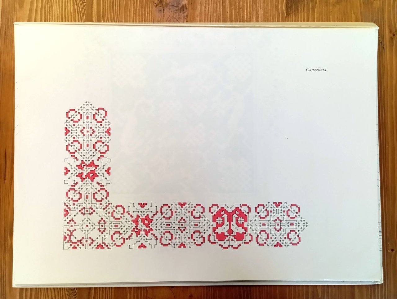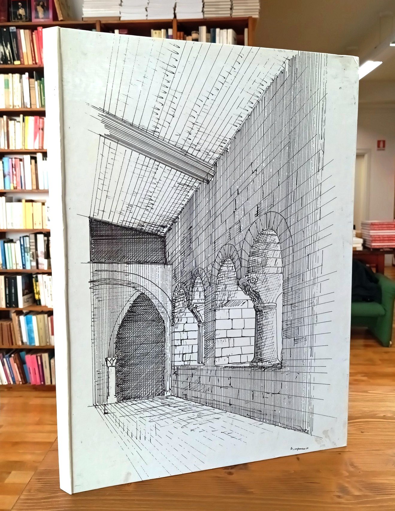 Cartella editoriale rigida (36 x 51 cm circa) che raccoglie in apposita tasca 15 grandi fogli ripiegati con riproduzioni di splendidi motivi per il ricamo "a punto Assisi"; tra questi citiamo i motivi "Drago Rampante", "Le rose di San Francesco", "Cancellata fiesolana", "Nodo d'amore", "San Francesco e gli uccellini", "Draghi doppi", "Ferrata Arezzo", "Tovaglietta Spoleto". Timbro di omaggio e di ex libris sulla tasca interna, peraltro ottimo esemplare di un album decisamente raro -- (dal testo introduttivo) 1981-1982 ANNO FRANCESCANO: Nell'VIII Centenario della nascita del più Santo tra gli umili, del più umile tra i Santi, […] il Consiglio di Amministrazione del "Laboratorio di S. Francesco" ha ritenuto opportuno pubblicare e diffondere i migliori ricami a punto ASSISI di sua proprietà, in una particolare veste tipografica e di facile lettura. Crediamo basti sfogliare le prime pagine della presente e singolare opera per essere colpiti dalla bellezza degli antichi motivi del punto Assisi, o punto croce. Abbiamo voluto portare a conoscenza degli estimatori del ricamo assisano un tesoro che per anni è rimasto nascosto, non per voluta trascuratezza, e ne facciamo onorevole ammenda. Tra le vecchie mura dell'edificio, in particolare nell'antica e suggestiva Chiesa di "S. GIACOMO DE MURO-RUPTO", che risale al 1088, riecheggia una lenta e dolce melopea, che parla della vita serena, laboriosa delle Monache Benedettine, che hanno qui vissuto in stretta clausura papale, dedicandosi alle più umili faccende. Dopo la Rivoluzione Francese, che le obbligò a ritornare alla vita laicale, quando le Figlie di S. Benedetto rientrarono nel loro Monastero, il Laboratorio riprese in pieno la sua attività e le migliori Famiglie di Assisi vollero affidare le loro figliole alla cura delle Suore, nell'Educandato femminile claustrale dei Santi Giacomo e Donato, e si formarono buone, brave e veramente esemplari madri di famiglie cristiane. […] Con umiltà e modestia, il presente lavoro vuole essere un richiamo al nostro mirabile passato, all'insegna del grande motto "Ora et labora". La leggenda francescana ha sempre fornito grandi motivi di ispirazione: dai silenziosi laboratori delle Clarisse, dai pannelli e dalle tovaglie per il culto divino, dai mirabili rosoni delle Chiese assisane, dagli stessi affreschi di Giotto e di Simone Martini, dai meravigliosi fiori del nostro Subasio, da tutti questi motivi sono nati i nostri disegni, su ispirazione e cura di una cara Benefattrice del Laboratorio, Sig.ra Buzzi, che volle lasciare al Laboratorio i disegni che ora recano le tracce del tempo. Riportati alla luce, ora essi vogliono testimoniare quel meraviglioso patrimonio d'arte che la città di Assisi ha custodito gelosamente, forte delle sue memorie sante, della sua tradizione, ricca nella sua povertà. Il lavoro d'arte, il nostro ricamo a punto croce, anzi a PUNTO ASSISI, oggi ritorna ancora più vivo, attuale e fiorisce tra le mani esperte di tante donne che amano la preziosità di certe linee e la tradizione di alcuni soggetti. Crediamo perciò di fare cosa grata al numeroso pubblico di esperte cultrici dell'arte preziosa del ricamo, nel dare alla stampa queste vecchie tavole, rivedute ma non corrette, originali nella loro soave interezza. (prof. Edoarda Pronti)