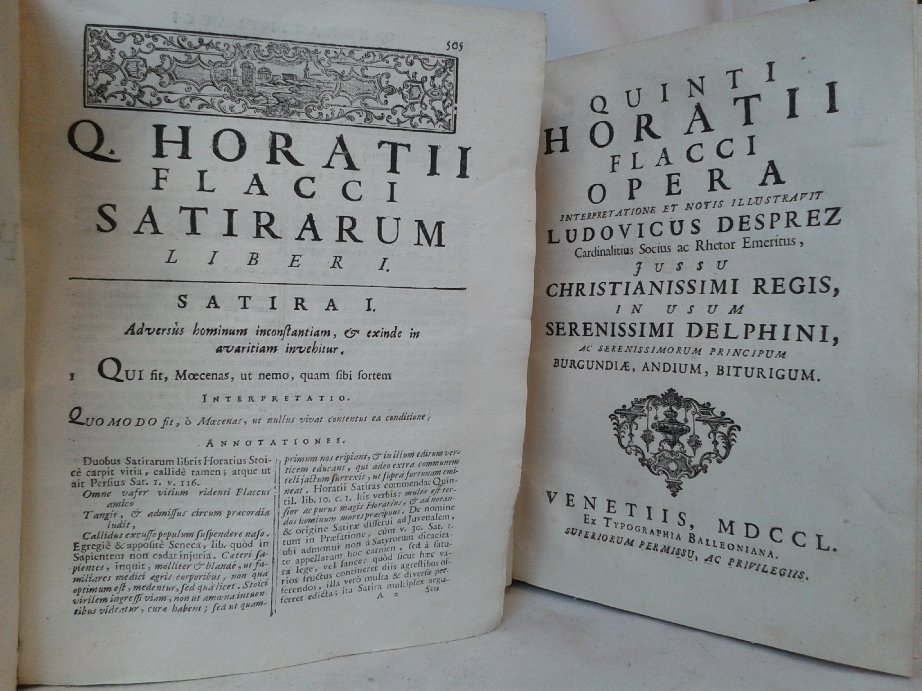 Q. Horatii Flacci OPERA Interpretatione et Notis Illustravit Ludovicus Desprez. Cardinalitius Socius ac Rhetor Emeritus, Jussu Christianissimi Regis, in usum Serenissimi Delphini ac Serenissimorum Principum Burgundiae, Andium, Biturigum