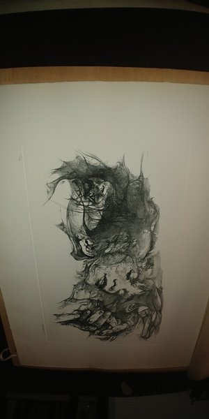 Cartella in folio massimo contenente 4 acquaforti originali tirate a 50 copie in numeri romani e 50 copie in numeri arabi opera di Renzo Vespignani. la nostra copia è la quella che riporta la numerazione araba. Elegante cartella in legno che raccoglie le grafiche.