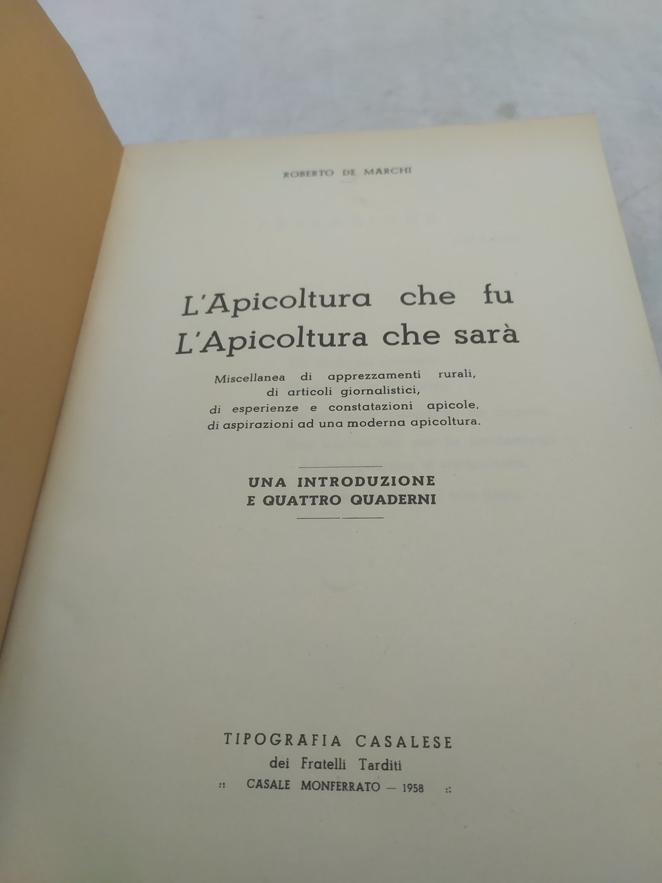 quaderni d'apicoltura roberto de marchi l'apicoltura che fu che sarà 1958 . , 1958 italiano, pp.183 costa senza titolo arancione