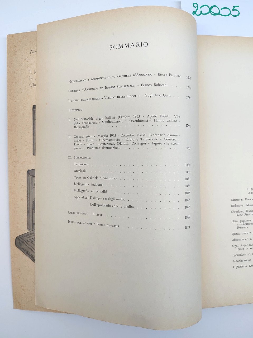 Quaderni Dannunziani fascicolo XXVIII XXIX 1964 Fondazione Il Vittoriale Degli Italiani