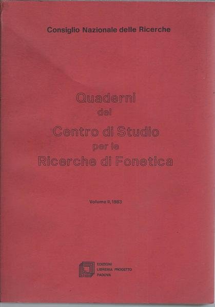 QUADERNI DEL CENTRO DI STUDIO PER LE RICERCHE DI FONETICA - VOL. II - 1983