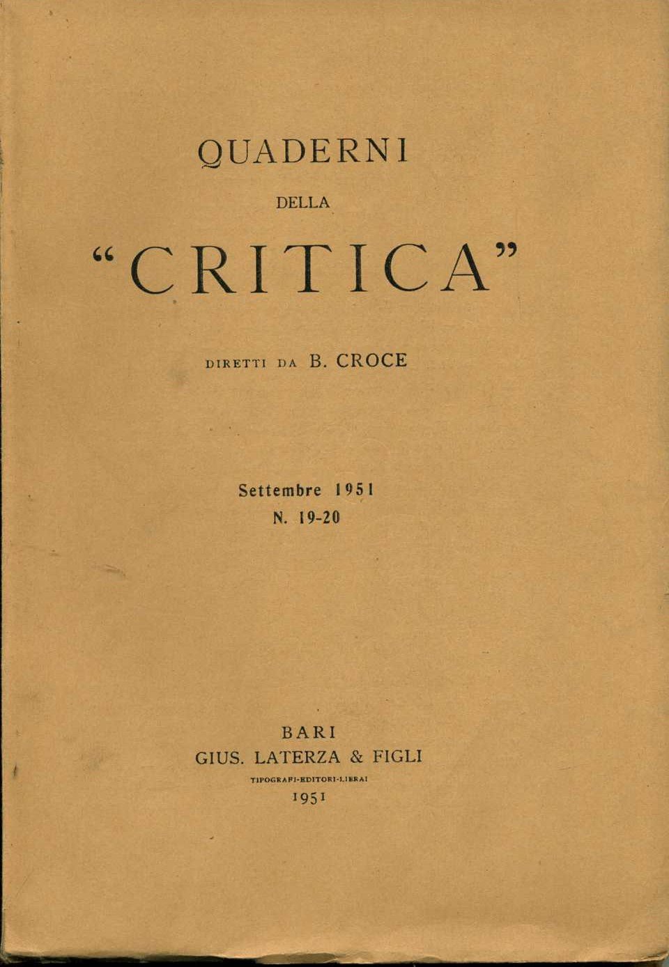 quaderni della critica n.19-20 settembre 1951 benedetto croce