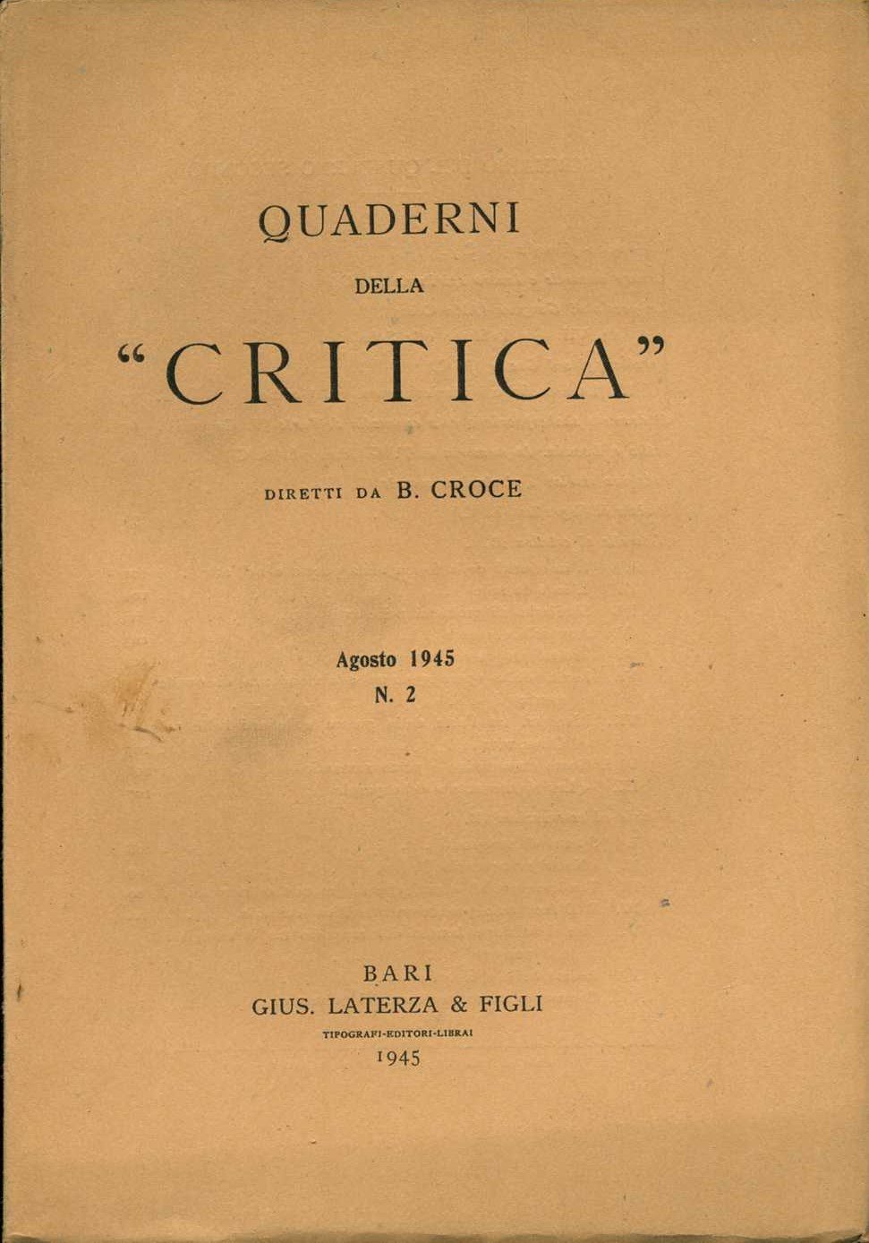 quaderni della critica n.2 agosto 1945 benedetto croce