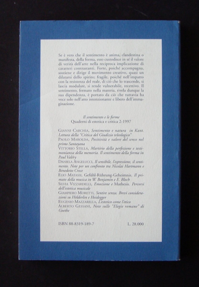 QUADERNI DI ESTETICA E CRITICA IL SENTIMENTO E LE FORME 2 1997 BULZONI ED 1998