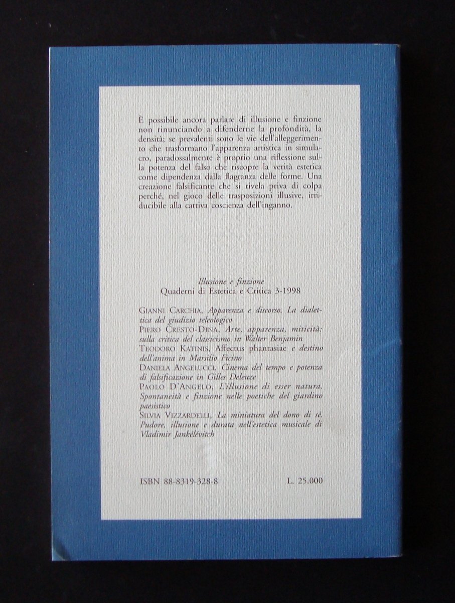 QUADERNI DI ESTETICA E CRITICA ILLUSIONE E FINZIONE 3 1998 BULZONI ED 1999