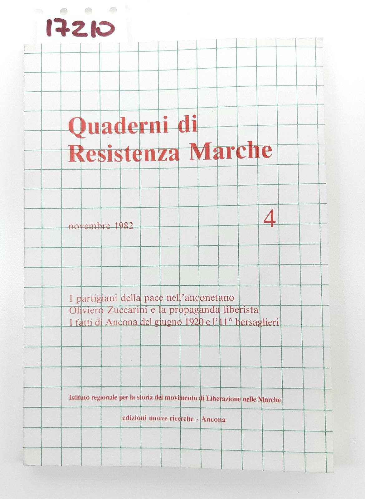 Quaderni di resistenza Marche numero 4 Edizioni Nuove Ricerche 1982
