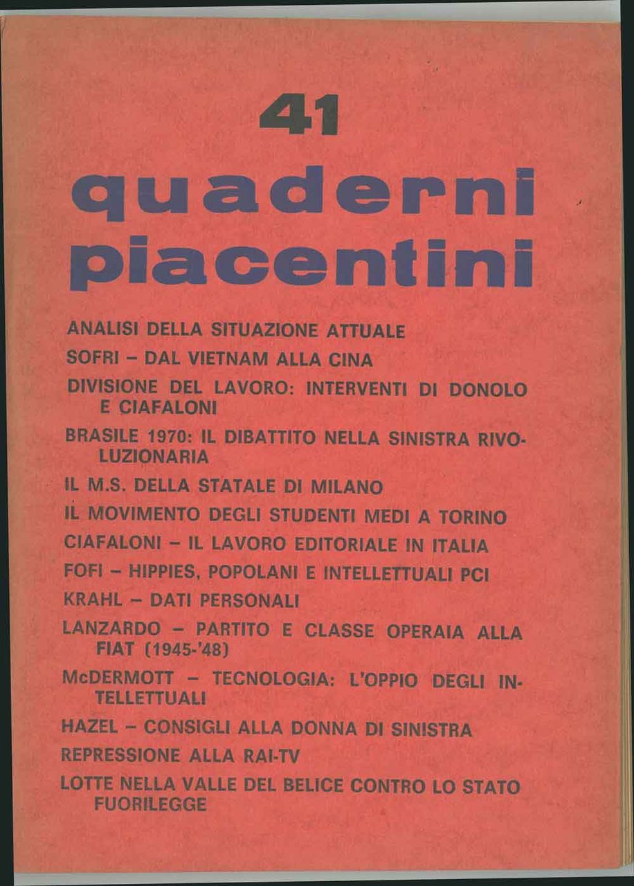 Quaderni piacentini. Anno ix, n. 41, luglio 1970