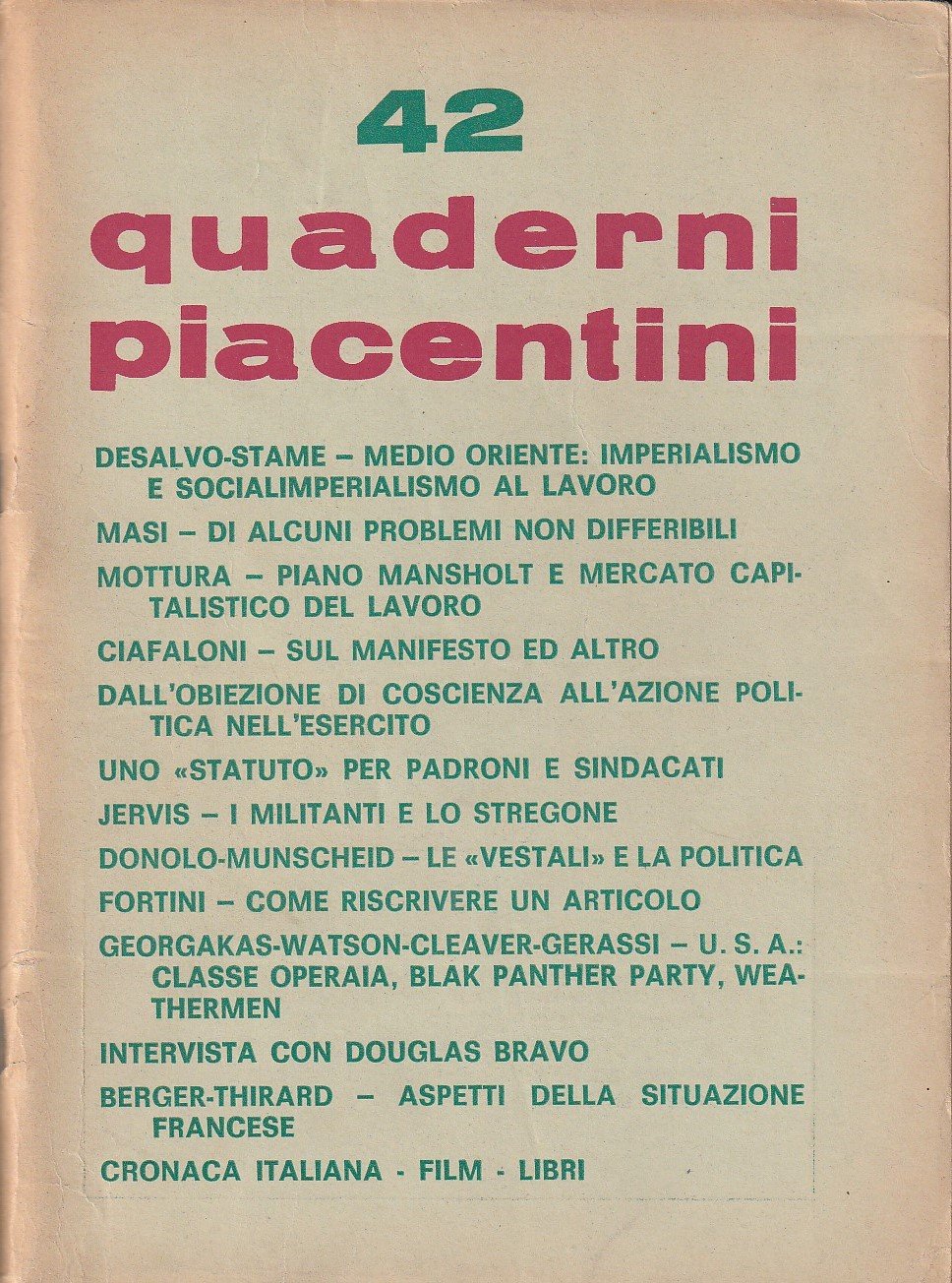Quaderni Piacentini. Anno IX. No. 42. Novembre 1970