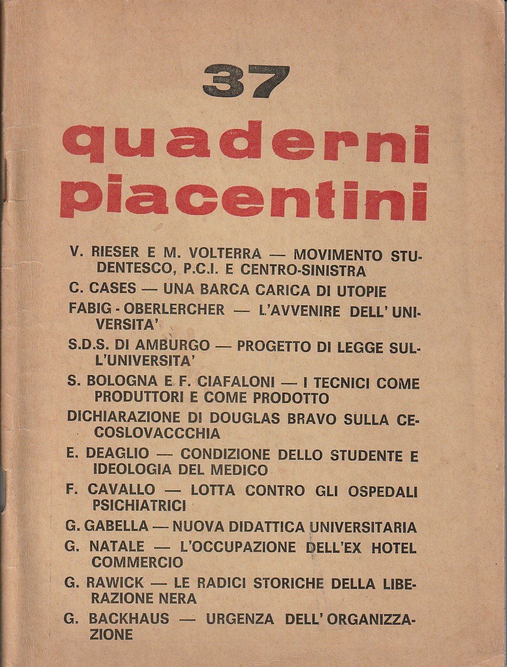 Quaderni Piacentini. Anno VIII. No. 37. Marzo 1969